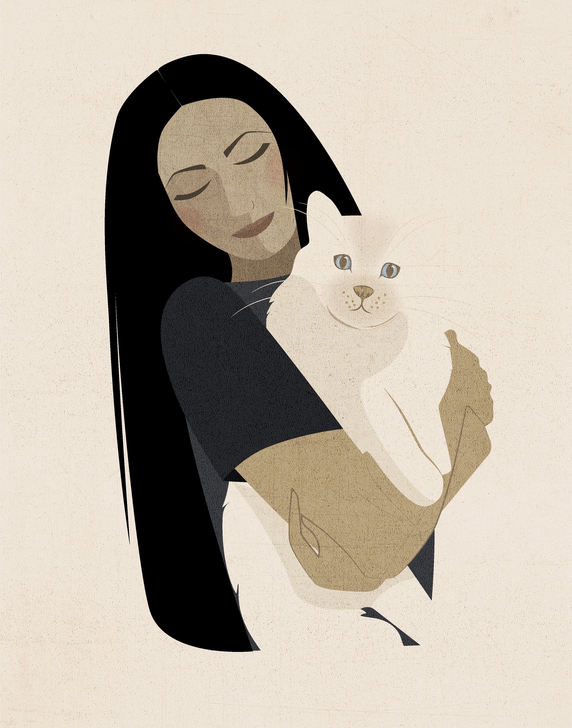 An architecturally inspired print: Black cat on Barcelona chair on Le Modular.