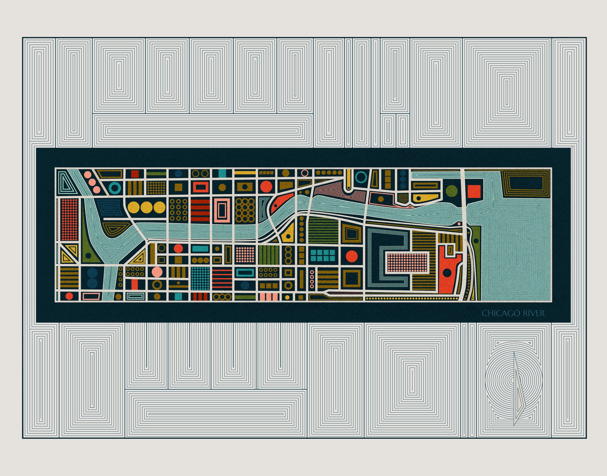 An abstract map of the Chicago Riverwal