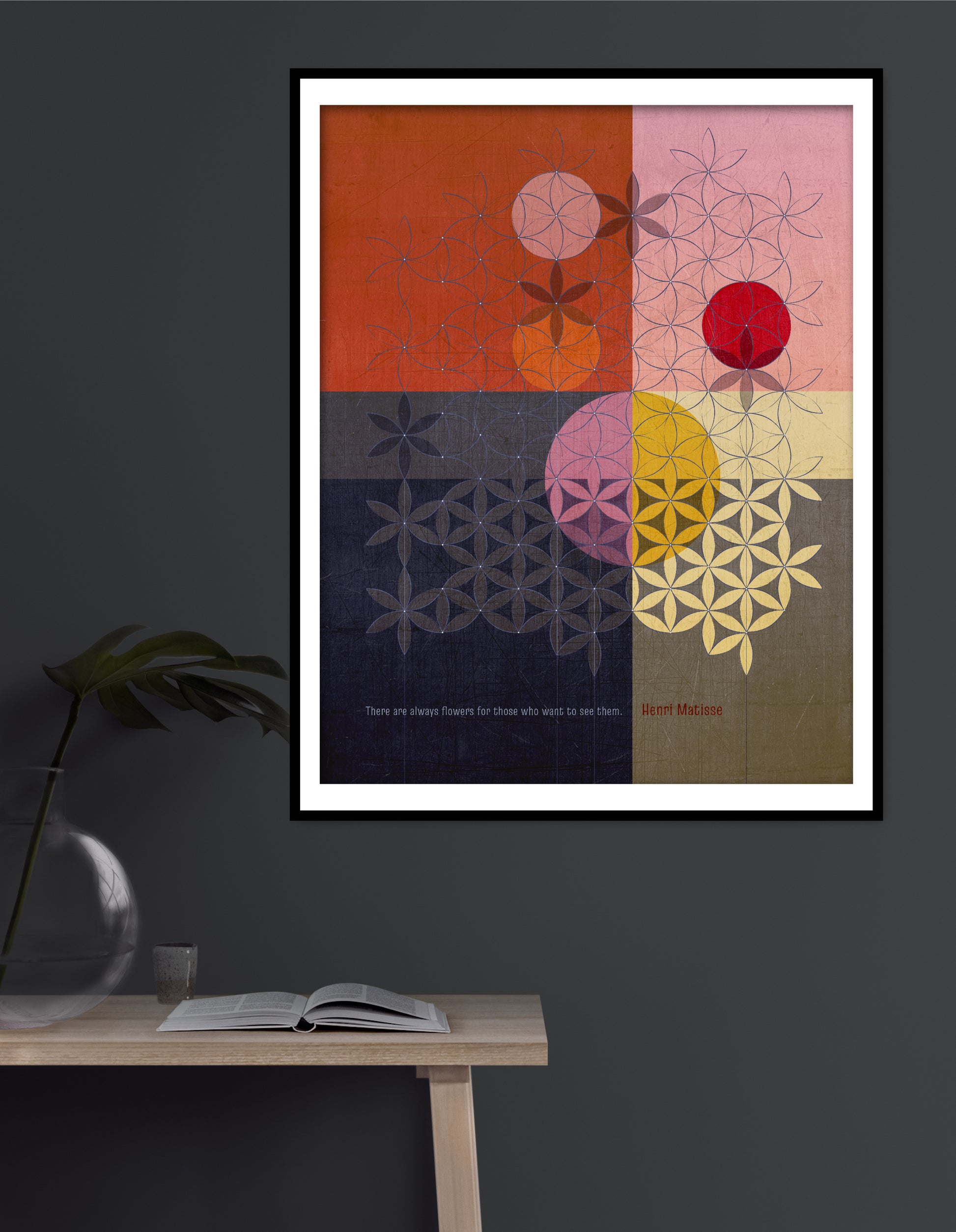 "There are always flowers for those who want to see them." Quote by Henri Matisse on a modern geometric floral print.