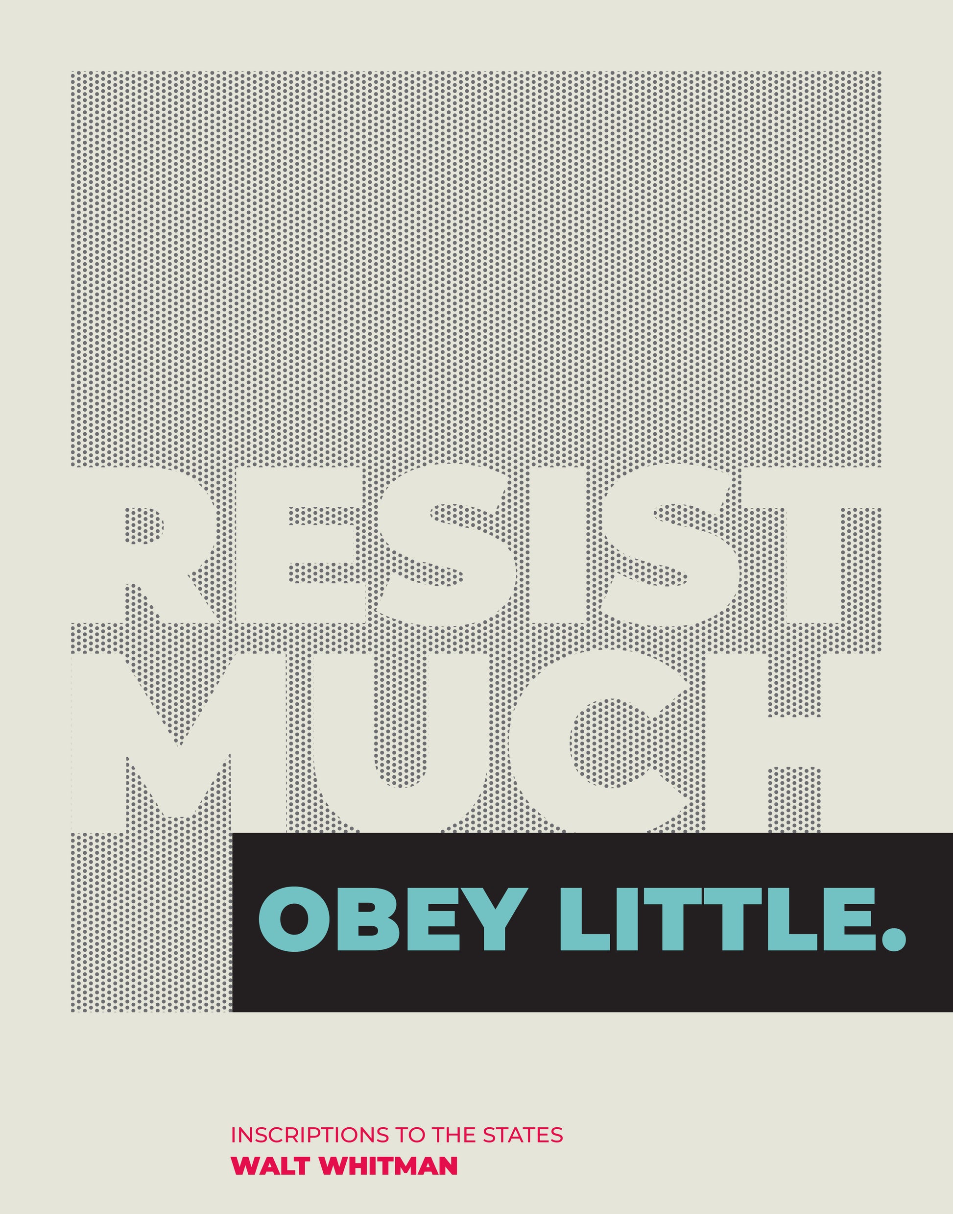 Resist much, obey little. Quote by Walt Whitman from his poem "Inscriptions to the States."