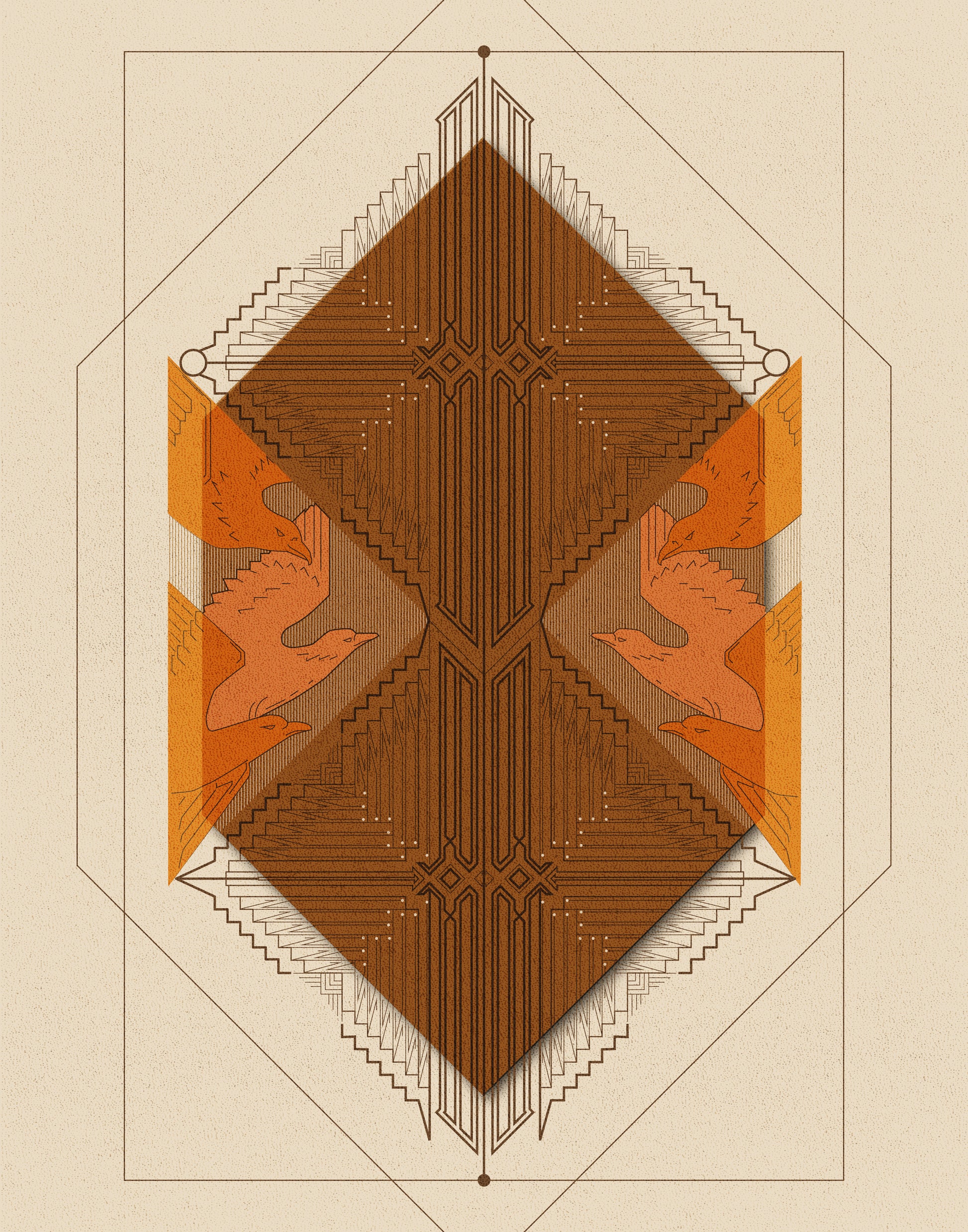 A print inspired by the ornamental detailing at the Chicago landmark 'The Rookery' by architects Daniel Burnham and John Root.