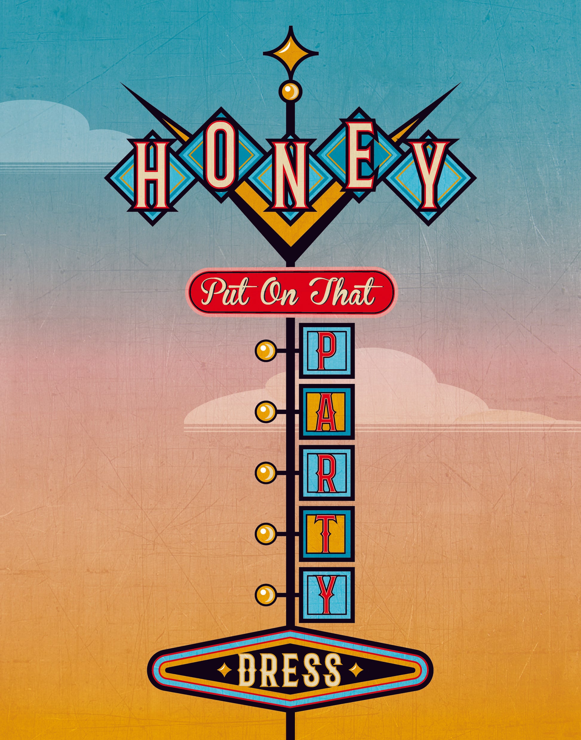 Lyrics from Tom Pettys' 'Last Dance with Mary Jane' illustrated using a retro road sign.