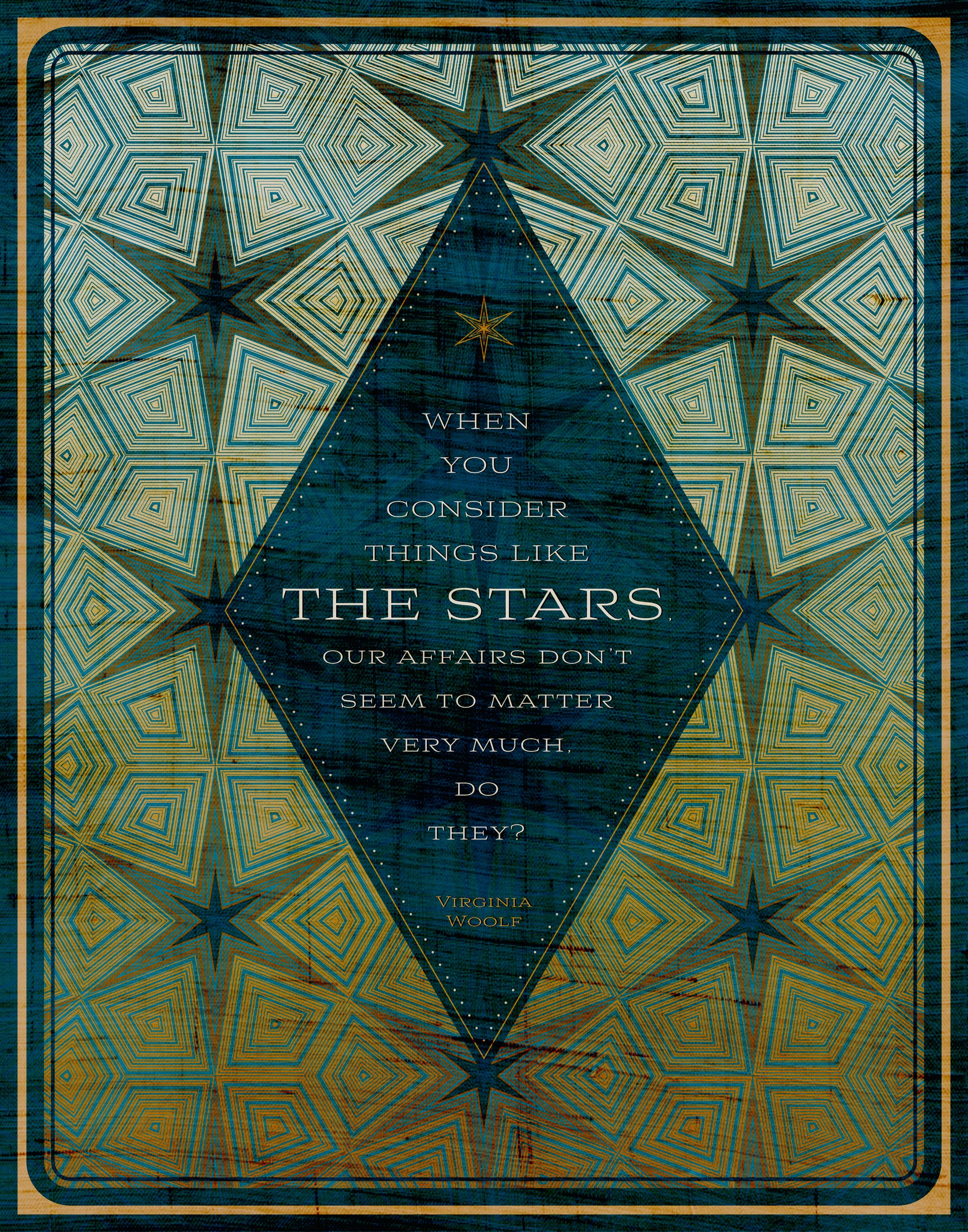 "When you consider things like the stars, our affairs don't seem to matter very much, do they?" Quote by Virginia Woolf reminding us not to sweat the small stuff.